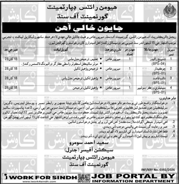 Latest Human Rights Department Karachi Jobs Notice 2026
