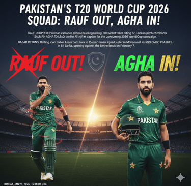 In a move that has sent shockwaves through the cricketing world, the Pakistan Cricket Board (PCB) officially announced its 15-man squad for the ICC Men’s T20 World Cup 2026 today, January 25. The most glaring omission? Express fast bowler Haris Rauf