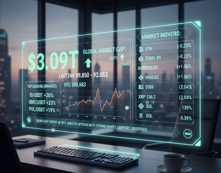 Bitcoin holds strong at $90K as the global market cap hits a massive $3.09 trillion. While major assets trade mixed, utility-driven tokens like ID, GMT, and POL are leading the charge. Discover why the 2026 market is shifting from speculative hype to real-world infrastructure.